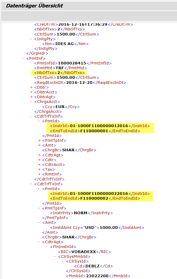 Die Gruppierung wird im XML-Datenträger zusammengefasst: