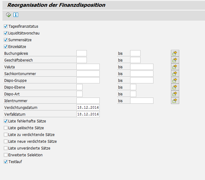 18. Dezember 2016 um 16:01 Offizieller Beitrag #1 Reorganisation der Finanzdisposition der Finanzdispotabellen:FDES (EinzelsÀtze, d.h. Avise und Planposten) FDSB (SummensÀtze der Bankkonten und Bankverrechnungskonten) FDSR (SummensÀtze der Debitoren und Kreditoren)