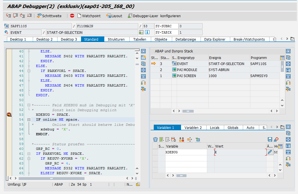 Breakpoint im SAPF110S