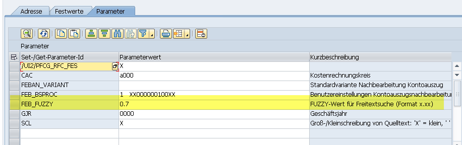 Die "Treffergenauigkeit" der Belege wird über die nachfolgenden Benutzerparameter gesteuert: