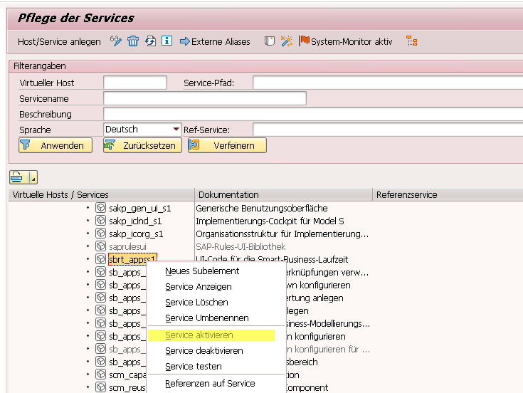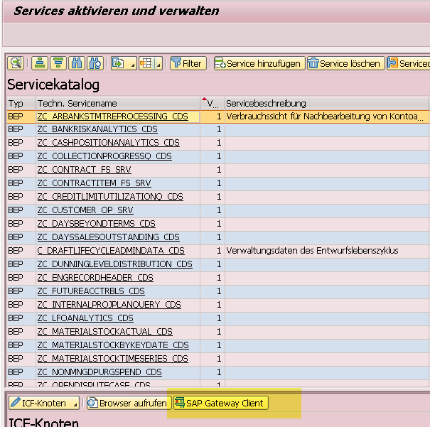Konfiguration des Service - Transaktion SICF (Gateway-Client)