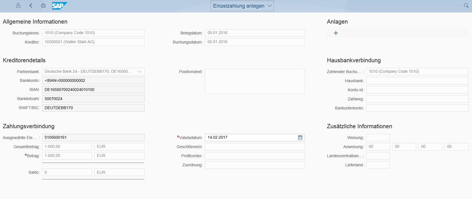 Customizing für Einzelzahlungen: