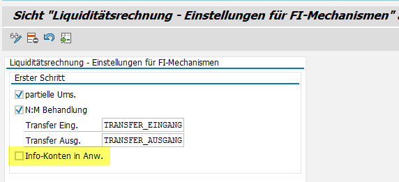 Ist der Haken nicht gesetzt, werden die Info-Konten in der Transaktion FLQC7 gepflegt.