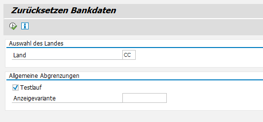 Der Report löscht die Bankenstammdaten eines Banklandes. Voraussetzung! Es darf kein produktiver Buchungskreis in dem Bankland vorhanden sein!