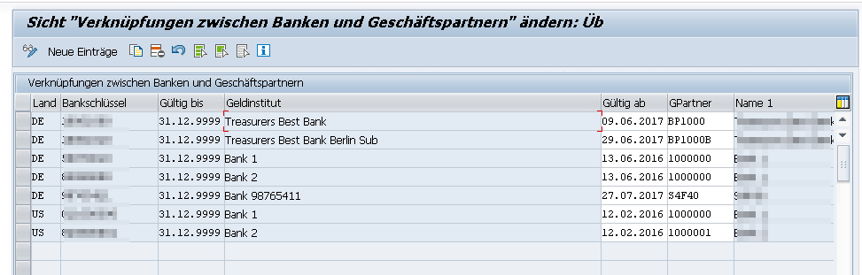 Mit der Transaktion FCLM_BAM_BNKA_BP können die Verknüpfungen zwischen Banken und Geschäftspartnern geprüft und geändert werden.