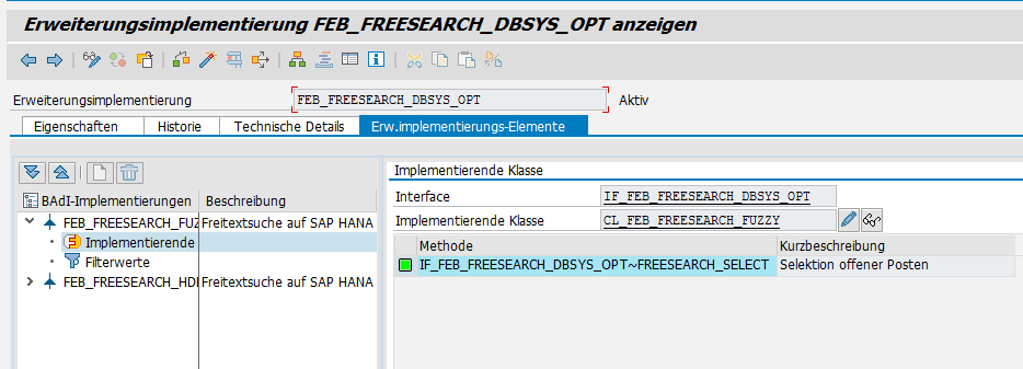 Aufruf der Erweiterungsimplementierung FEB_FREESEARCH_DBSYS_OPT für die Freitextsuche der FEB_BSPROC.