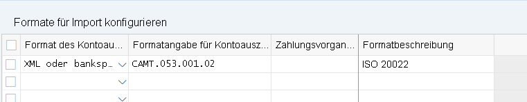 Mit dieser Customizing-Einstellungen können Formate für den elektronischen Kontoauszug festgelegt werden, die mit der SAP-Fiori-App "Eingangszahlungsdateien verwalten" importiert werden dürfen.
