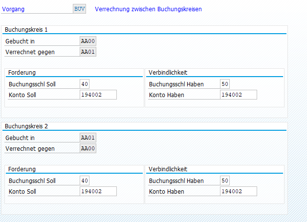 Zusätzlich wird in der Transaktion OBYA die Verrechnung zwischen den Buchungskreisen definiert: