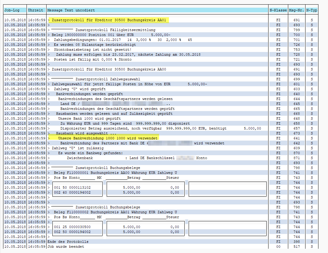 Die fälligen Rechnungen aus dem Buchungskreis AA01 werden über die Bank des Buchungskreis AA00 reguliert und über die zuvor definierten Verrechnungskonten verrechnet: