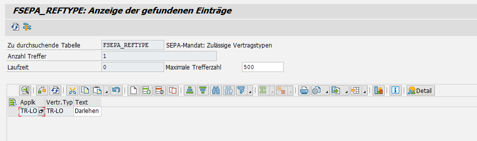 Ăber die Tabelle FSEPA_REFTYPE können die zulĂ€ssigen Vertragstypen eines SEPA-Mandates festgelegt werden. So können beispielsweise unterschiedliche Vertragstypen zu einem Mandat hinterlegt werden (Beispiel Vertragstyp Darlehen). Wird dies im laufenden Betrieb nicht benötigt können die Vertragstypen ĂŒber die Tabelle FSEPA_REFTYPE verwaltet werden.