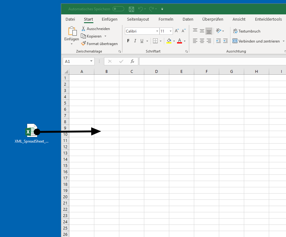 Import der XML-Arbeitsblattvorlage in Excel - „Drag and Drop“ der XML-Arbeitsvorlage:
