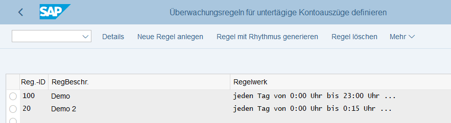 Anlage von Überwachungsregeln über die Transaktion FCLM_BRM_RULE