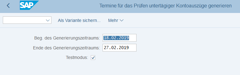Einplanen für das Prüfen von untertägigen Kontoauszügen über den Report FCLM_BRM_GENERATE_APPT