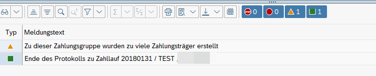 Die Erstellung des Datenträgers erfolgt über den Report SAPFPAYM. Die eigentliche Erzeugung des Datenträgers kann im Regelfall beliebig oft durchgeführt werden und stellt damit ein gewisses Sicherheitsrisiko dar Dubletten des Datenträgers zu erstellen. Im Protokoll bei der Erstellung des Datenträgers wird ein entsprechendes Fehlerprotokoll ausgegeben: