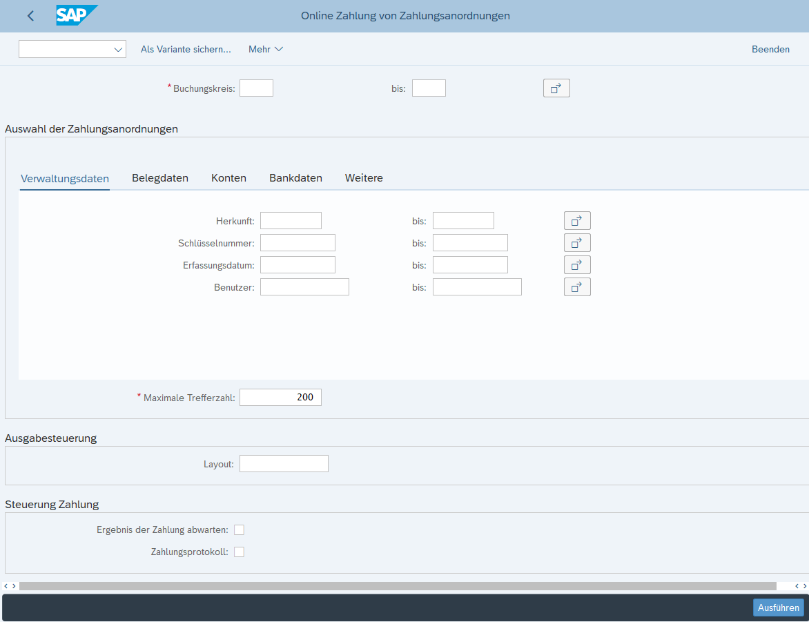 Online Zahlungen von Zahlungsanordnungen mit der Transaktion F8BX