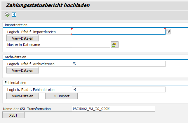 27. MÀrz 2013 um 14:34 Offizieller Beitrag #1 Mit dem Hinweis 1722824 ist es möglich den Payment-Status-Report pain.002 auch ohne SAP PI direkt in SAP-BCM zu verarbeiten (Report RBNK_IMPORT_PAYM_STATUS_REPORT).