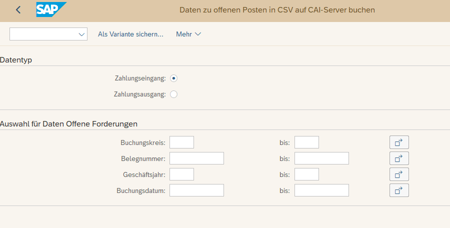 21. November 2020 um 10:25 Offizieller Beitrag #1 Der Hinweis enthĂ€lt den Report ML_CASH_APP_DATA_POST_OPENITEM zum Download von CSV-Dateien zur Extraktion offener Posten oder des Reports fĂŒr die automatische Nachbearbeitung von KontoauszĂŒgen angelegt wurden.
