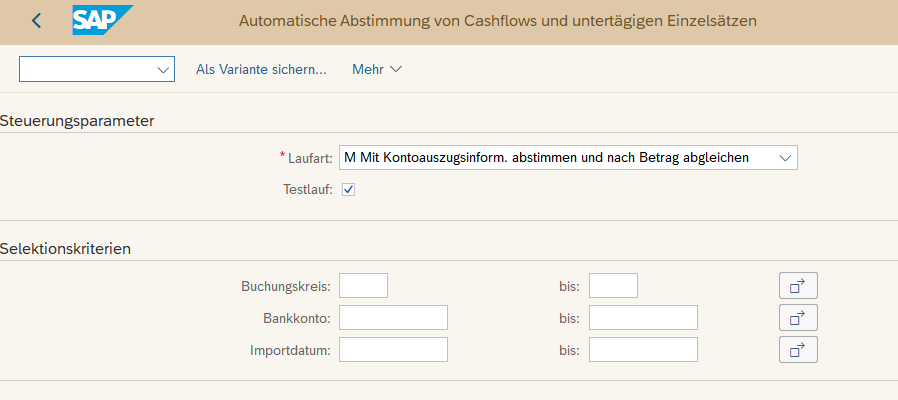 Mit Hilfe der Transaktion FCLM_CR_INTRAM können untertägige Kontoauszüge (CAMT.052 / SWIFT MT942) abgestimmt werden.