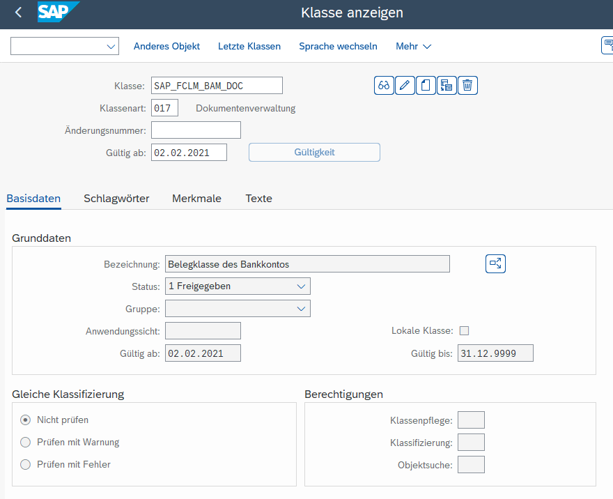 Für Beleganhänge im BRM wird die Belegklasse SAP_FCLM_BAM_DOC benötigt. Die Einstellungen dazu können über die Transaktion CL03 geprüft werden. Darin muss die Klasse SAP_FCLM_BAM_DOC und die Klassenart 017 vorhanden sein. Fehlen diese können diese mit Hilfe des Reports FCLM_BRM_GENERATE_CLASS_CHAR generiert werden.