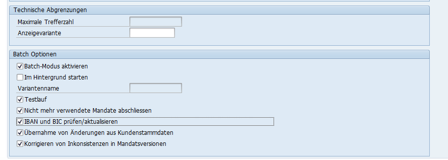 Durch den Einbau des Hinweis 1829771 können Änderungen in den Adressdaten der Debitorenstammdaten in die jeweiligen Mandate übernommen werden. Dazu wird in der Mandatsverwaltung ein Funktionsbaustein in das Feld Funktionsbaust. für kundeneigene Batch-Funktion 2 hinterlegt.