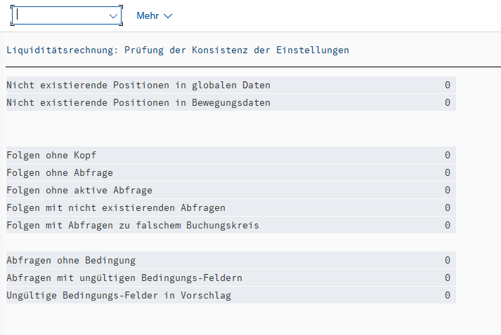 26. Februar 2022 um 07:10 Offizieller Beitrag #1 Mit Hilfe des Reports RFLQ_S004 kann die Konsistenz der Einstellungen in der Liquiditätsrechnung geprüft werden.