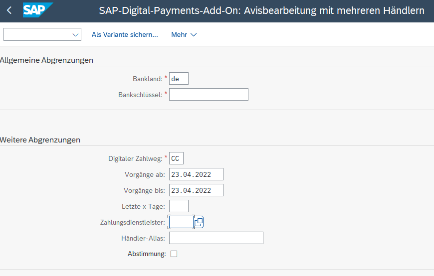 Kontenabrufe von digitalen Zahlungsavisen via Report bzw. Jobvorlage RFDP_ADVICE_V2.