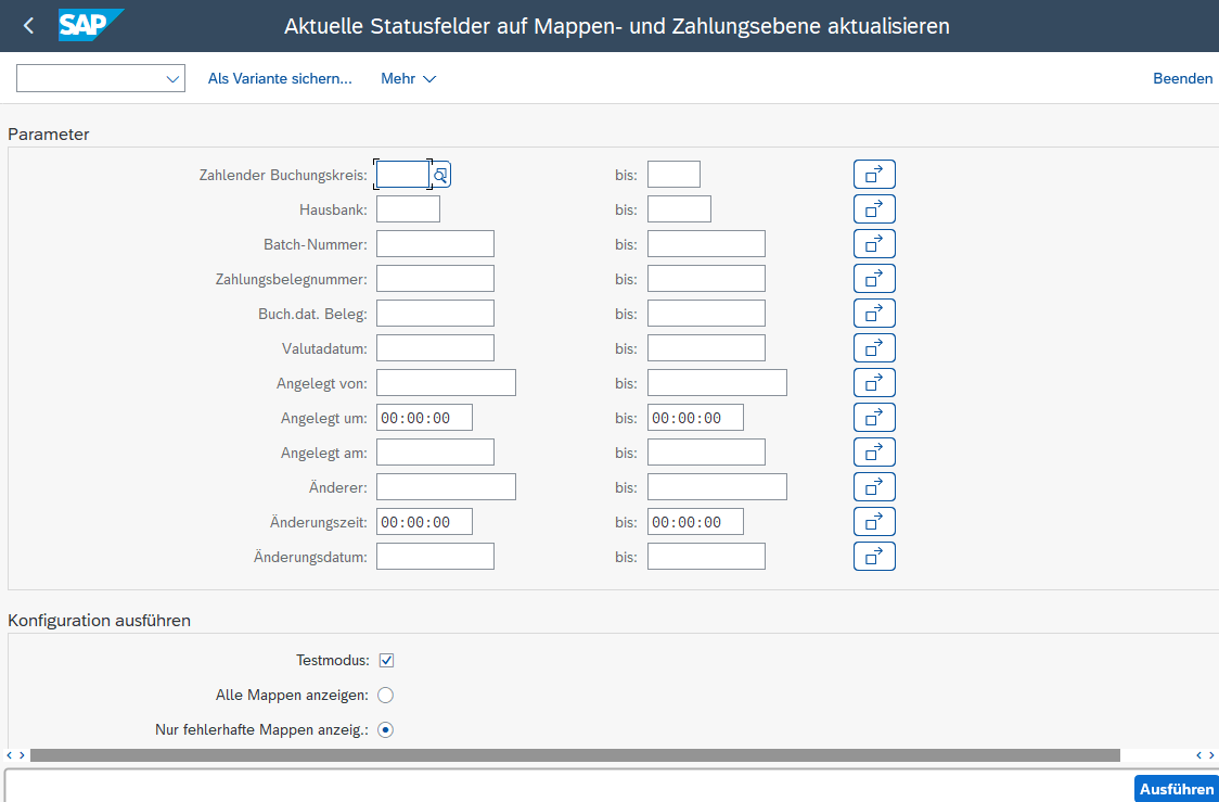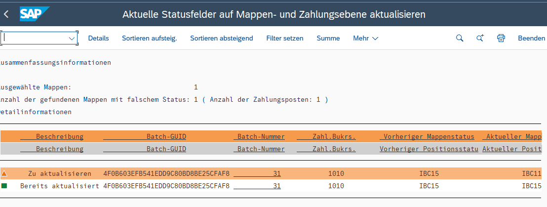Mit Hilfe des Reports RBNK_BAT_CUR_STS_UPDT können fehlerhafte BCM-Statusfelder ermittelt und korrigiert werden.