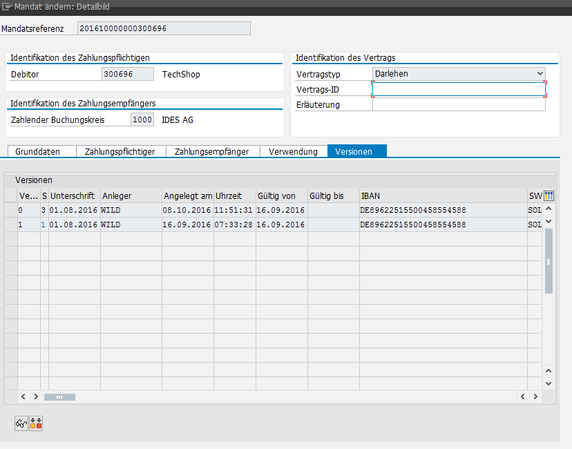 Mit dem Einbau des Hinweises 1827286 können die unterschiedlichen Versionen eines Mandates einfach und übersichtlich verglichen werden.