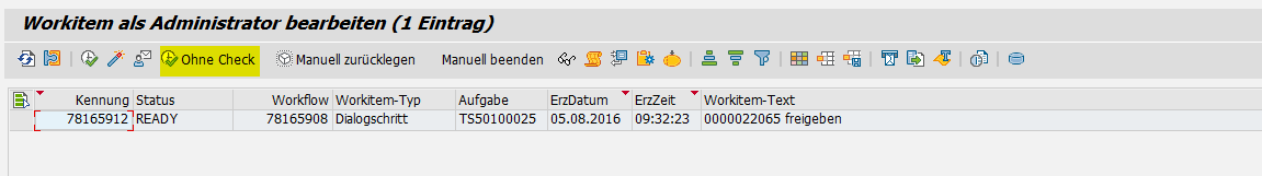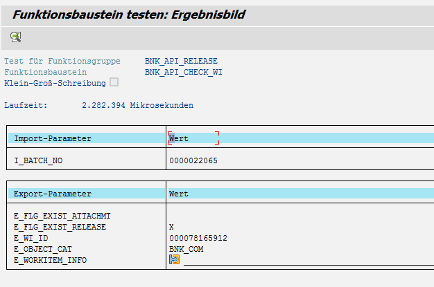 In einem ersten Schritt muss die WI-Nummer über den Baustein BNK_API_CHECK_WI ermittelt werden. Über die TA SWIA wird das zuvor selektierte Workitem bearbeitet bzw. der Report ausgeführt.