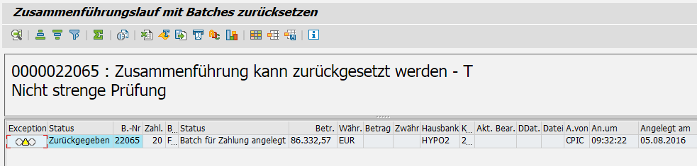 Mit dem Report RBNK_MERGE_RESET kann dann der Batch zurückgesetzt werden. Dazu wird das: