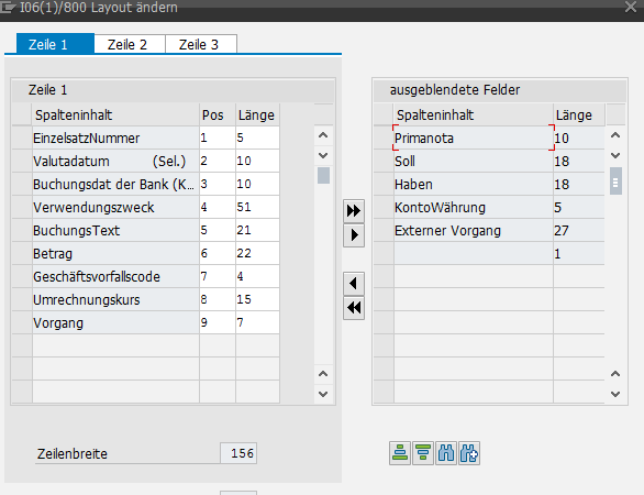 15. Januar 2015 um 09:28 Offizieller Beitrag #1 Über die Transaktion FF.6 können nur begrenzt Felder angezeigt werden. Nach Einbau des HW 2072425 kann die Struktur FOAP_ACC_S_RFEBKA00_LIST über einen Append erweitert werden, sodass weitere FEBEP-Felder für die Anzeige aufgenommen werden können: