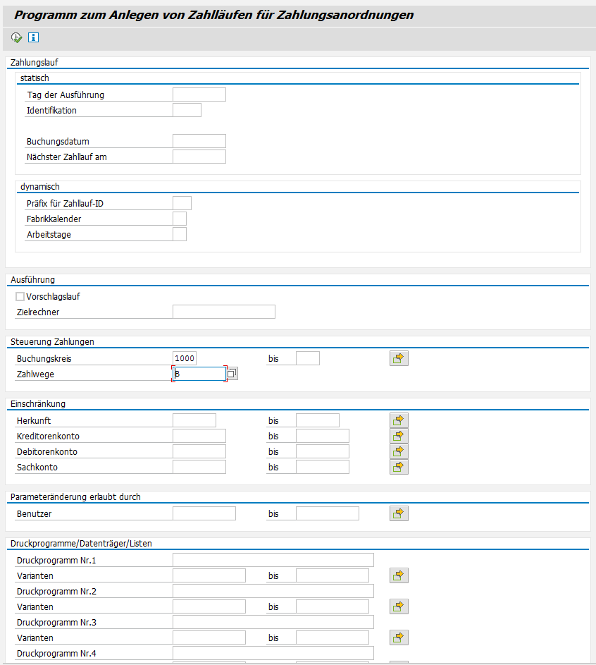 Zahlungsanordnungen können automatische mit der Transaktion F8BU bzw. dem Report RFPRQZLP eingeplant werden. Die Abgrenzung der Fälligkeits- und Buchungsdaten kann dynamisch erfolgen.