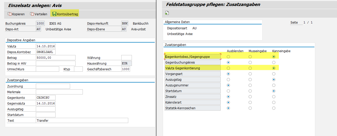 - Bankkontoüberträge mit der Transaktion FRFT_B