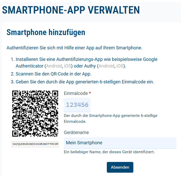 - Wenn Sie noch keine Authentifizierungs-App auf Ihrem Smartphone installiert haben, laden Sie zunächst eine in Ihrem App-Store herunter.